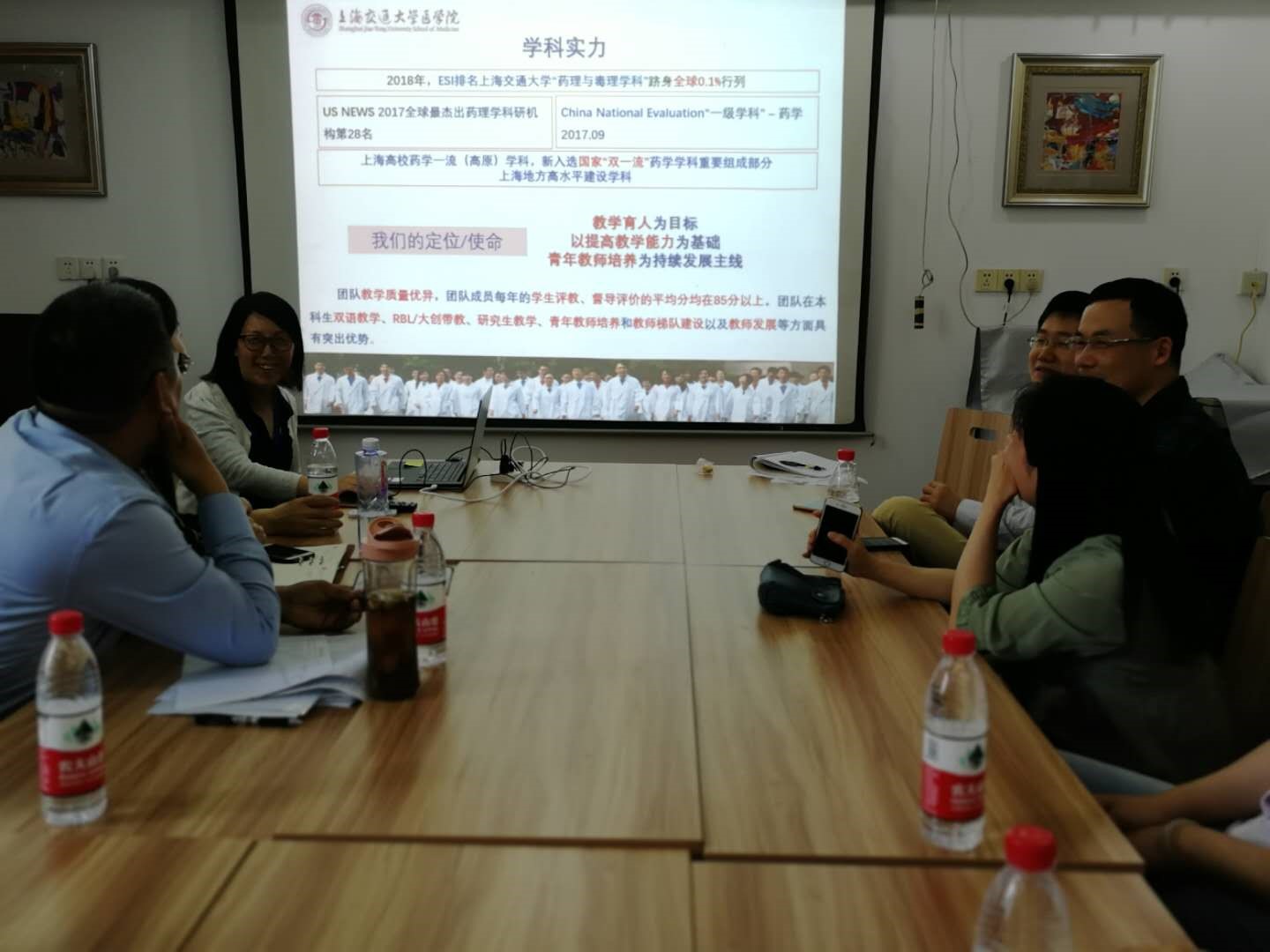 参观结束后进行了座谈,世俱杯官方网站药物研制支部书记邱明丰研究员、副院长、党委委员和药理与化学生物学支部书记李娟副教授分别介绍了支部的发展、科研、教学等,药理系常务副主任朱亮教授、党委委员对药理与化学生物学科特色进行了总结,副书记兼副院长张宝红副教授对学科评估中基础医学院给予的支持表示感谢并希望继续共同努力“”双一流建设”、共同迎接即将到来的新一轮学科评估。随后,两个支部党员们重点介绍了各自在教学与科研的心得和经验、科研合作兴趣与需求、学生培养等方面进行了进一步的交流。同时,同志们深入探讨如何通过合作来共同推动更高层次上建设世俱杯官方网站一流药学学科。现场气氛热烈,大家一致表示以后要加强双方的互动,促进优势互补,紧密合作。最后合影留恋,并期待再次开展联合主题党日活动。