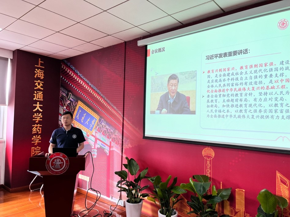 根据学习贯彻习近平新时代中国特色社会主义思想主题教育相关工作部署,药物研制党支部书记苏靖以《深入学习习近平总书记关于高校工作的重要论述》为题讲授主题教育专题党课。苏靖领学了习近平总书记关于高校工作重要论述的主要内容,要坚持党对高校工作的全面领导,明确立德树人是高校的根本任务。要始终把高等教育摆在重要战略位置,并建设具有中国特色的世界一流大学。要深化高等教育领域改革创新,建设一支既是“经师”又是“人师”的高校教师队伍。