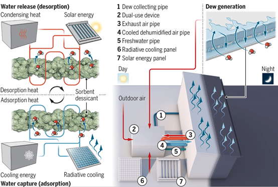 The world is facing a severe challenge to limit the global average temperature increase below 2 °C, preferably to 1.5 °C. Amidst the drive towards reduced energy consumption and technologies for CO2 management, the impacts of climate change on droughts and water scarcity are getting more and more severe. Researchers from School of Mechanical Engineering at Shanghai Jiao Tong University are proposing a conceptually new idea in a study published on May 5 in the journal Science to simultaneously cool the air and generate water from the atmosphere in places that are both hot and dry.