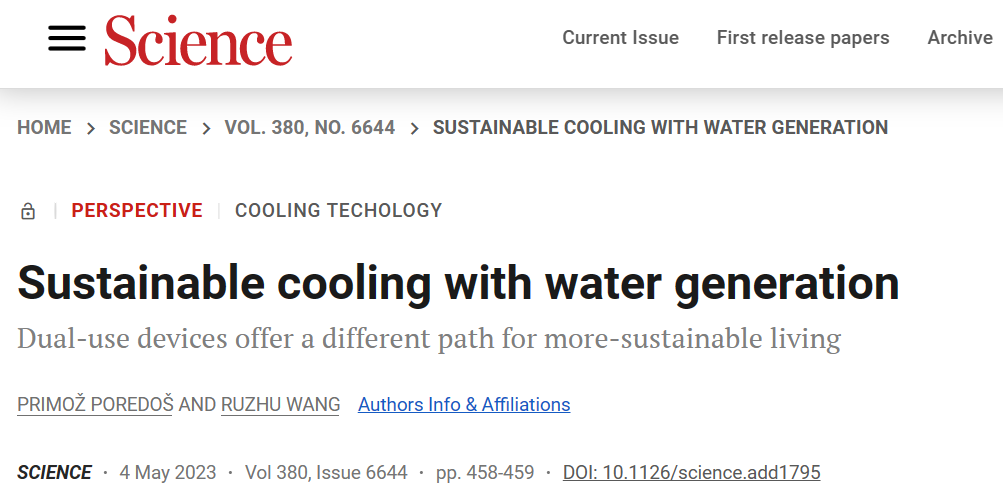 Prof. Ruzhu Wang proposed a conceptually new idea in a study published in the journal Science
