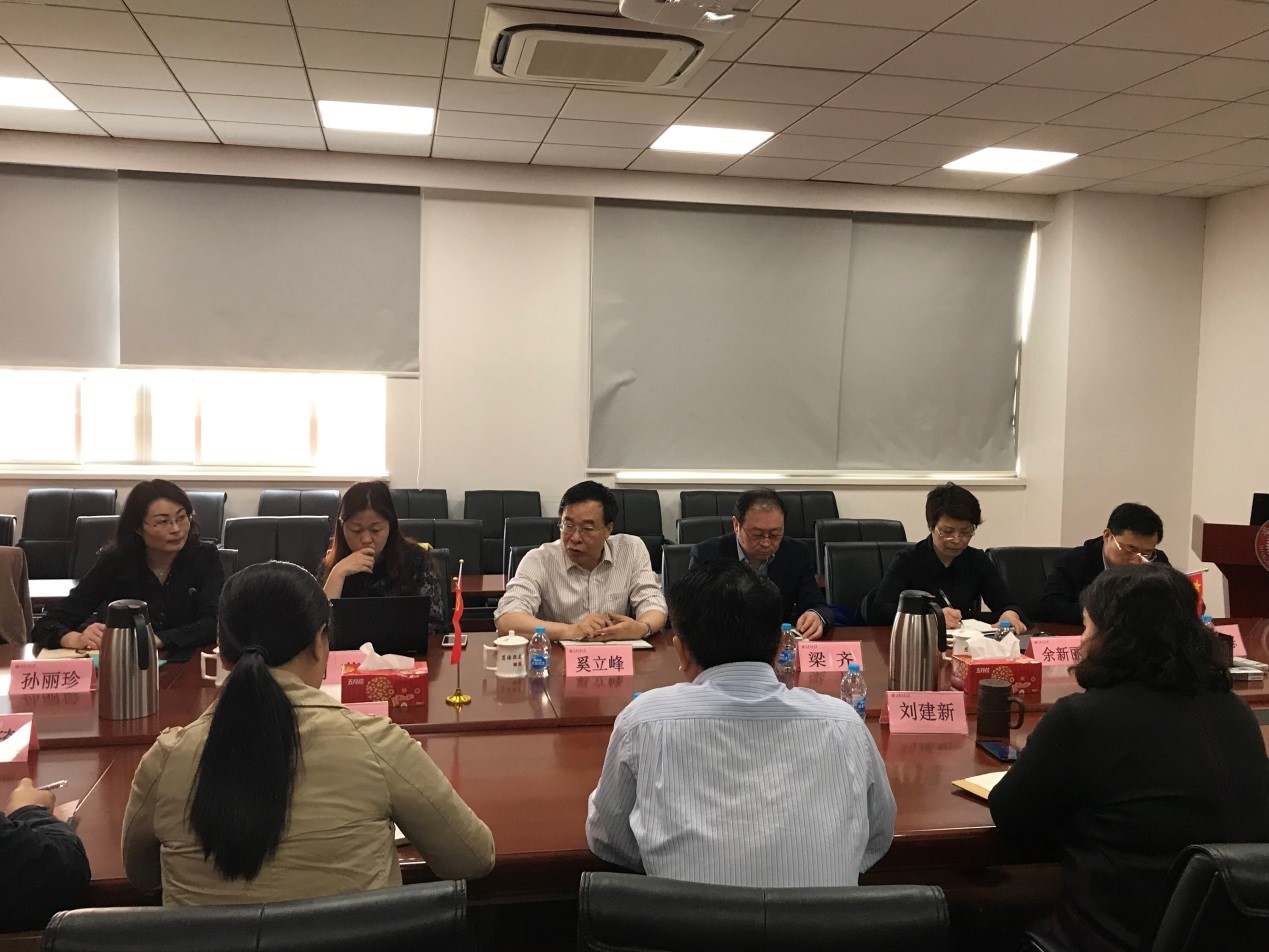 2019年4月9日上午,校党委常委、副校长奚立峰一行八人来世俱杯官方网站调研学科建设工作。人力资源处处长、党委教师工作部部长梁齐、重点建设办主任胡薇、副主任周大喜、科学技术发展研究院副院长孙丽珍、规划处副主任余新丽、研究生院学科建设办公室主任张国栋等陪同调研。世俱杯官方网站党委书记刘建新、院长朱建伟、副院长张宝红、邱明丰、副书记孟祥琦、院长助理刘德龙、李伟、徐蓉等参加汇报交流。