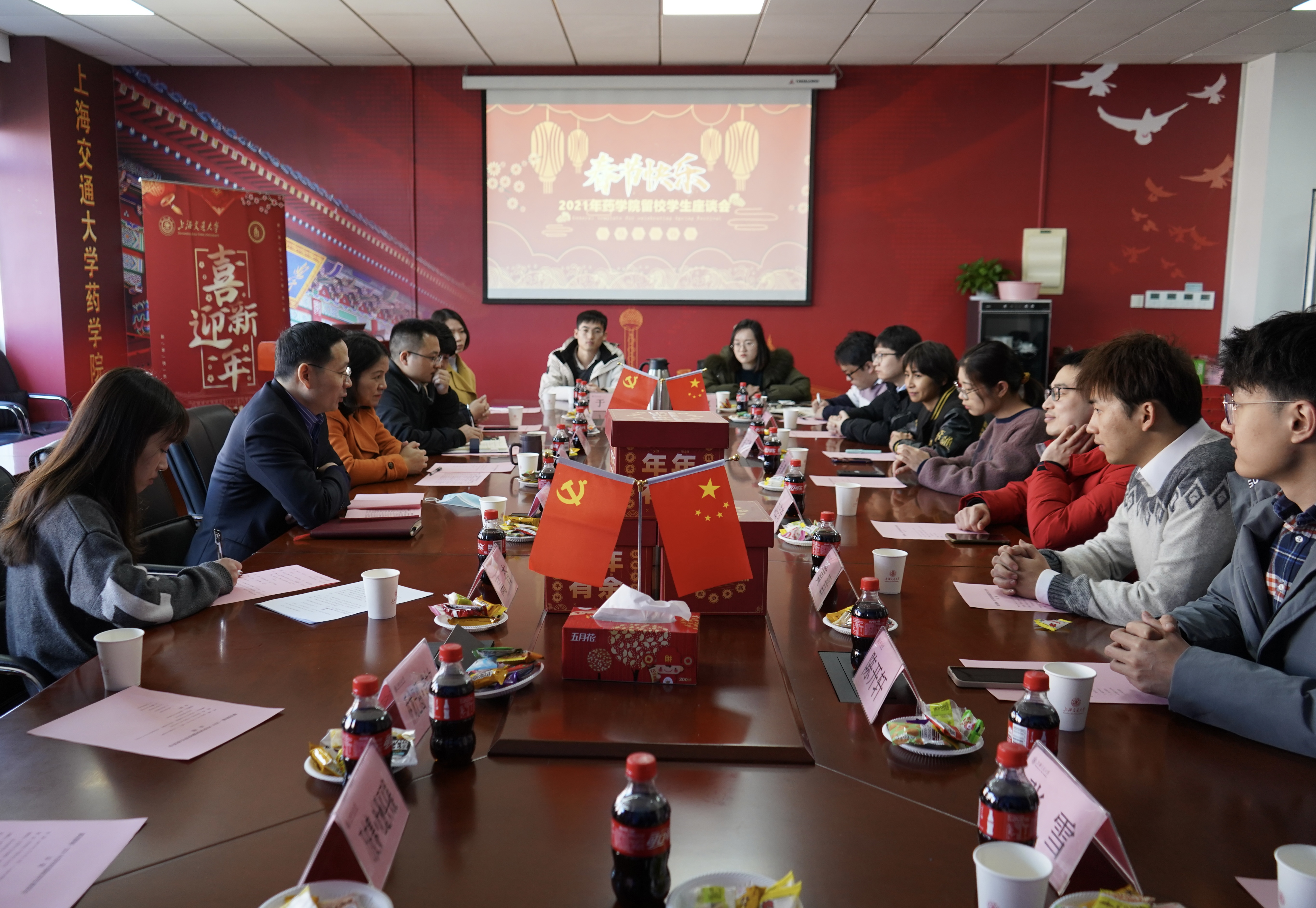 2月9日下午,世俱杯官方网站在5号楼412会议室举行“喜迎新春”主题留校学生座谈会。学院党委书记刘建新、院长张翱、党委副书记叶定剑与16名中外学生代表交流座谈。会议由团委书记高杏主持。