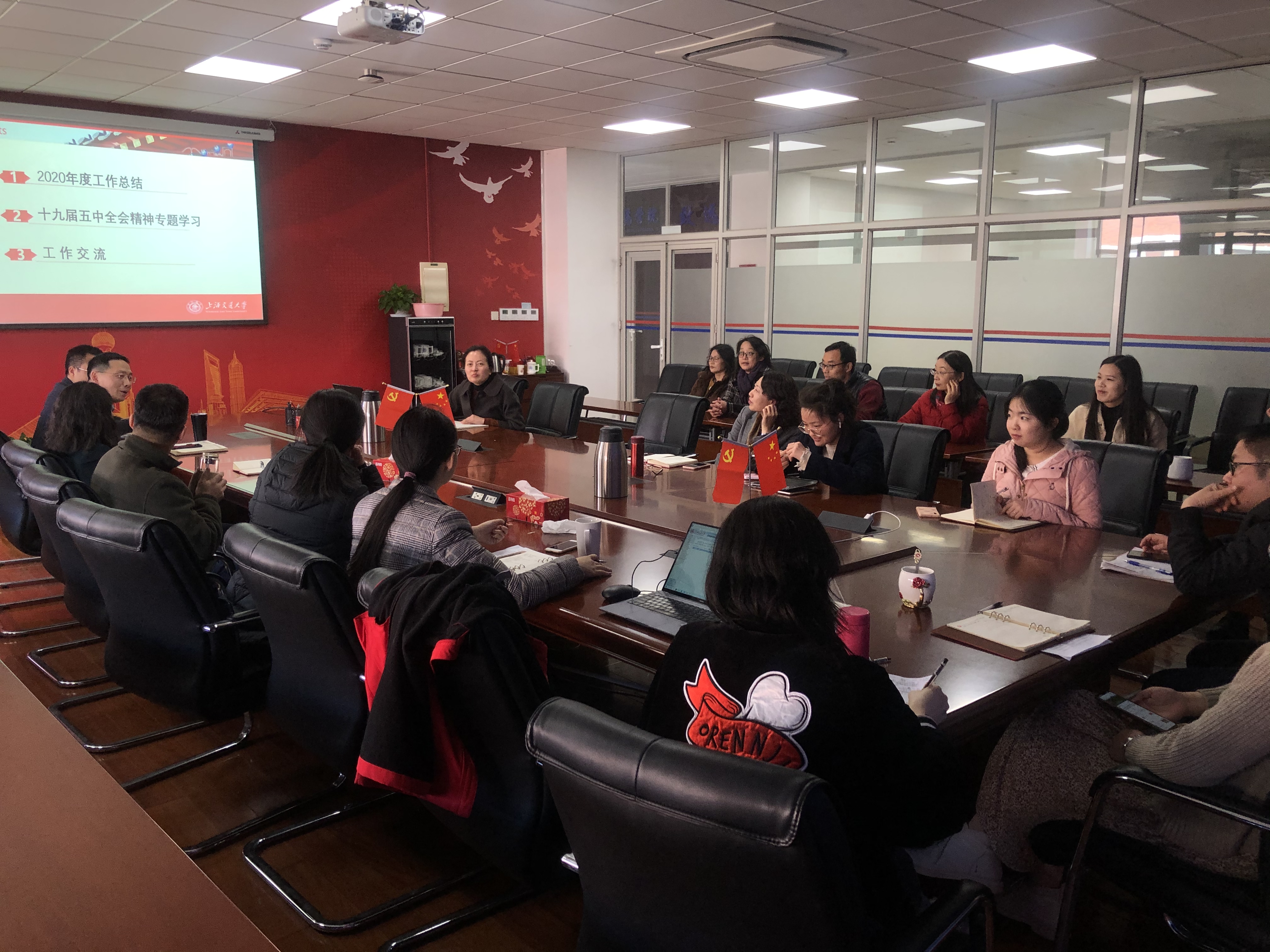 首先,李伟汇报了管理服务党支部2020年的工作内容和取得的成效。党支部始终紧扣学院中心工作抓党建,以党建引领管理,提升服务效能。2020年组织开展形式多样的主题党日活动,包括理论学习、技能培训、参观学习和志愿服务等活动,支部行政管理人员立足自身岗位,积极为学院发展群策群力,贡献力量。随后,宣传委员魏雅琛领学了十九届五中全会精神,大家集体学习后加深了理解。用理论武装头脑,指导实践工作。