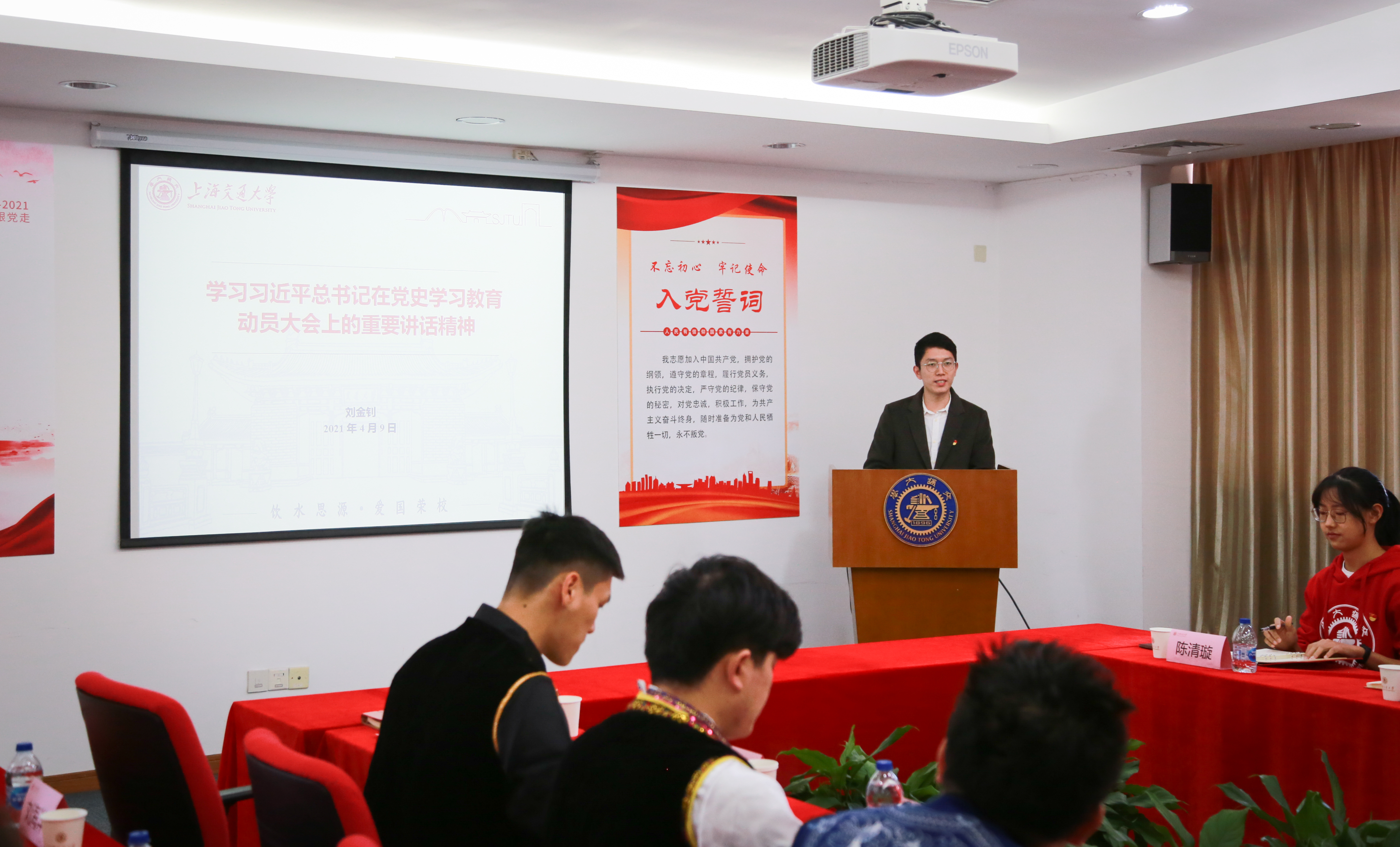 4月9日,为进一步学史明志,争做一名合格的时代答卷人,世俱杯官方网站本科生党支部召开“学习百年党史·汲取奋进力量”主题党日活动。教育部思政司党建统战处处长蒋宏潮、校党委组织部副部长余新丽、党委宣传部副部长陈华栋、学院党委书记刘建新、党委副书记叶定剑及全体本科生党员出席,活动由党支部陈清璇主持。