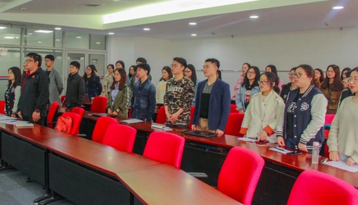 首先,到场的同学和老师全体起立共唱共青团团歌,团日活动在激昂的歌声中拉开序幕。